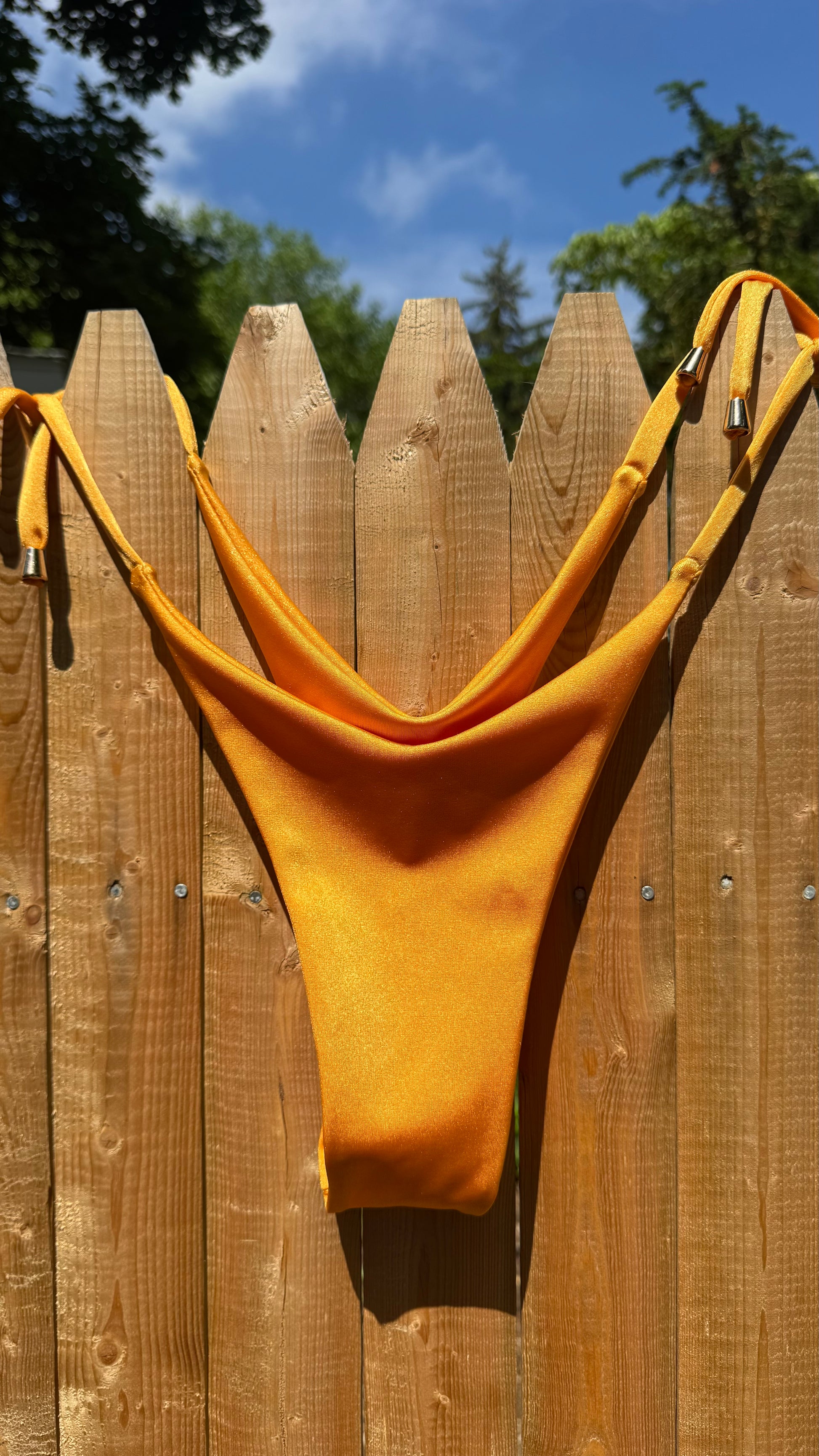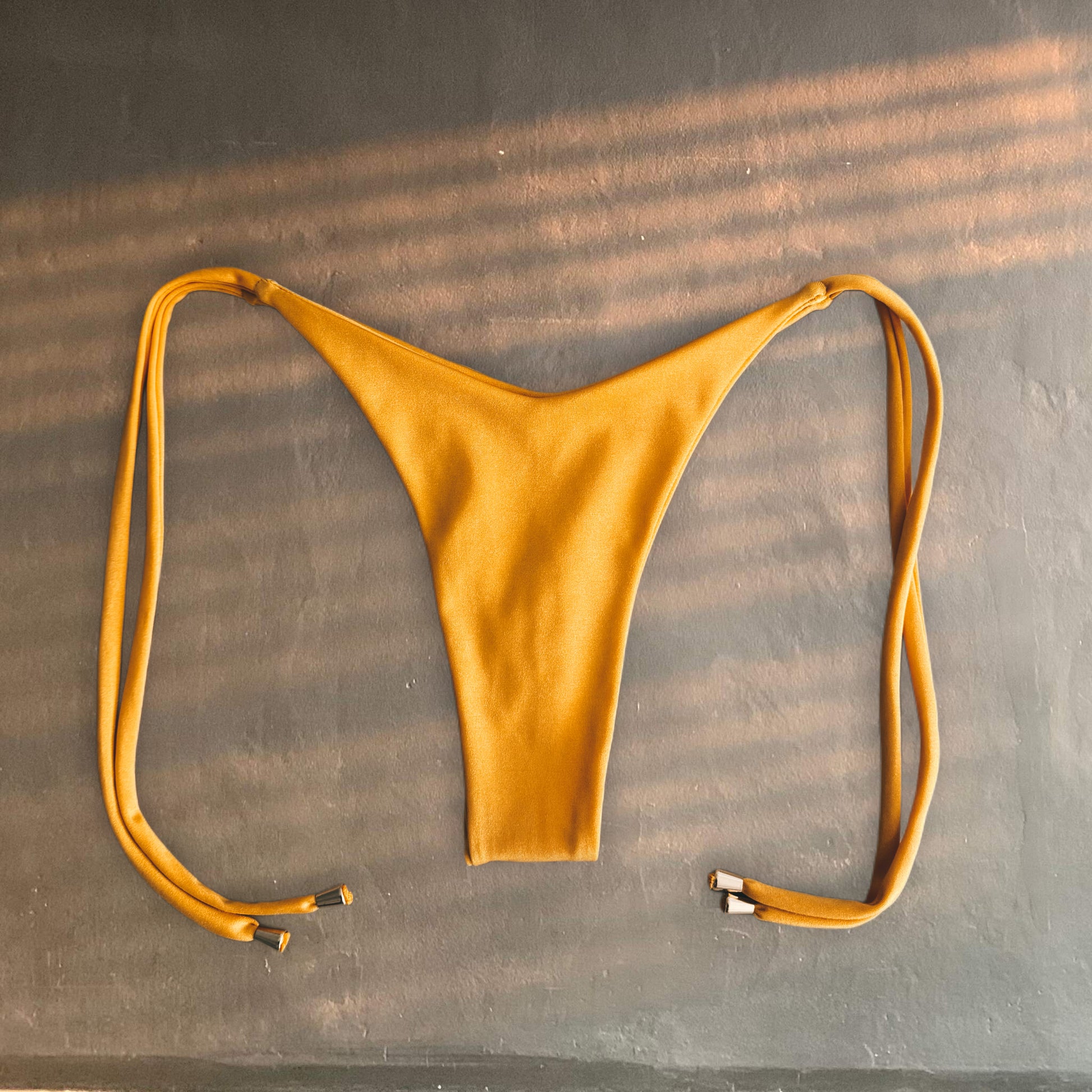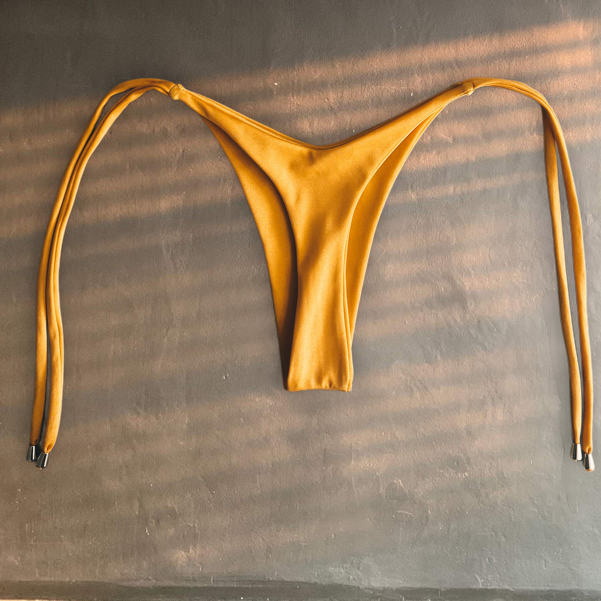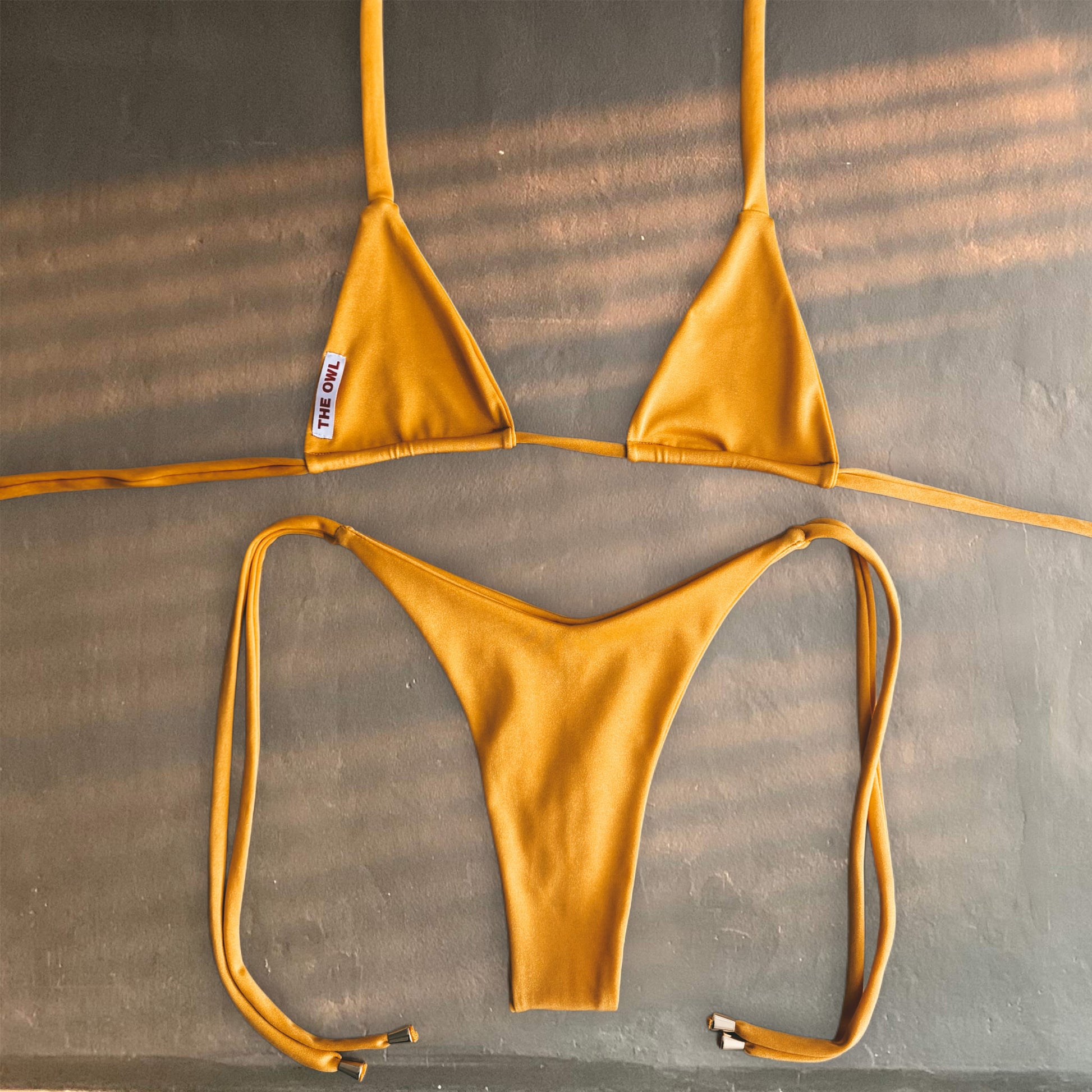 Let the sun hit you different. Sunny Spicy is the bold mustard bikini that turns heads. Its classic triangle cut and shiny stretch fabric bring that spicy glow your summer needs.