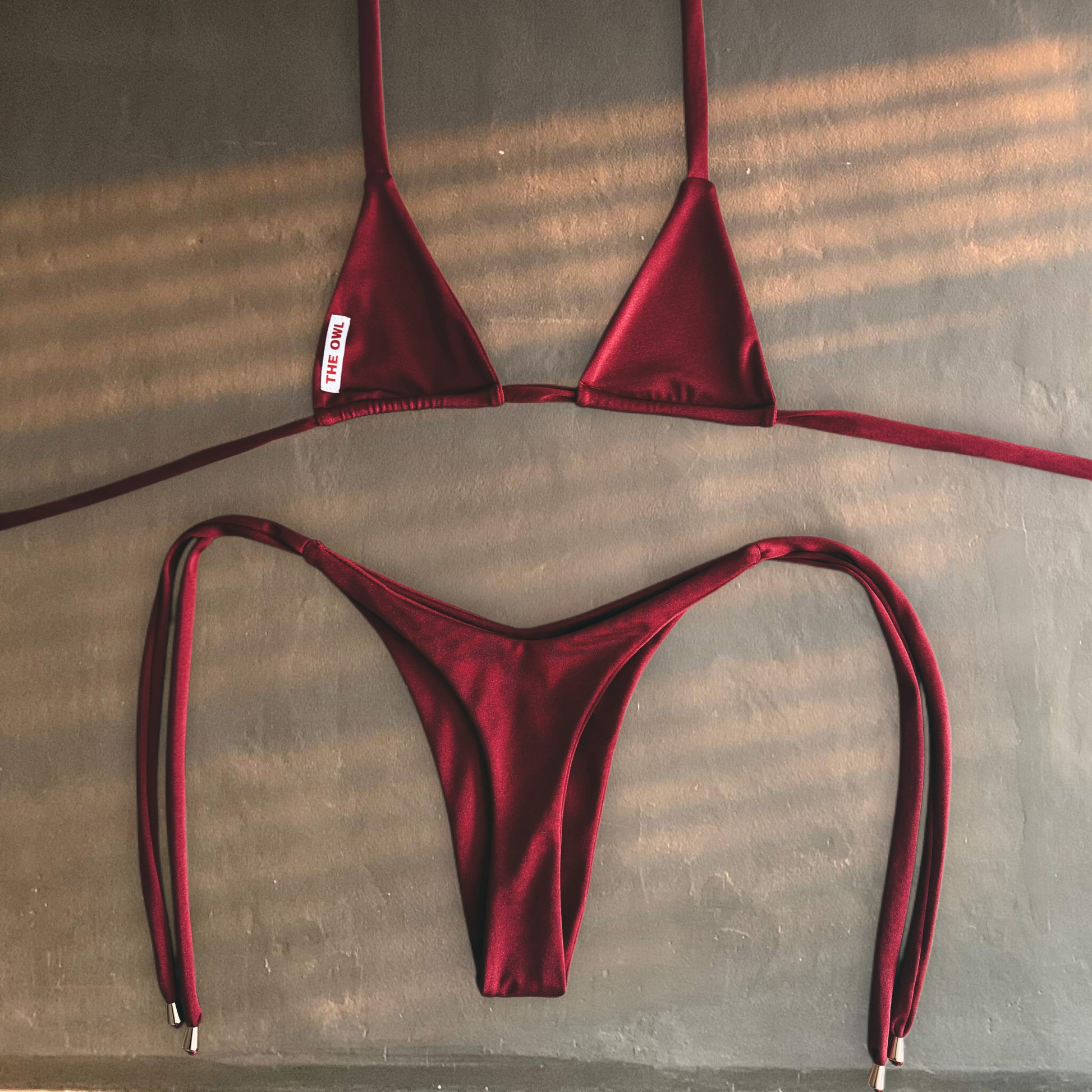 Red Wine is rich, smooth, and a little bit wild. This deep burgundy bikini is made to highlight your silhouette under the sun. Minimal coverage, max impact